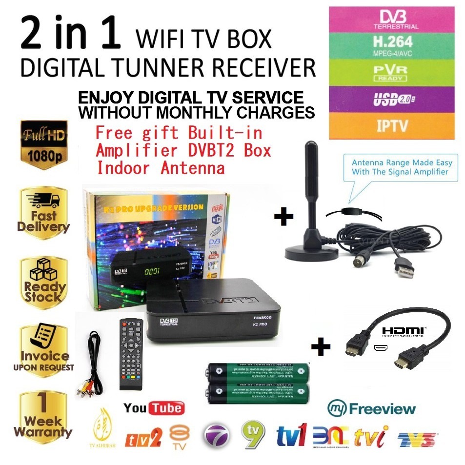 Hot Item K2 Pro Digital Tv Receiver Dekoder Free Indoor Antenna Hdmi Shopee Malaysia