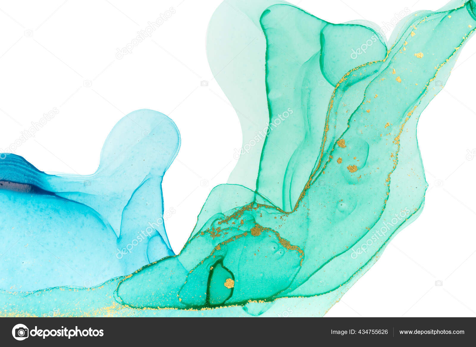 Alcol inchiostro blu, verde e oro macchie astratte su sfondo bianco. Gocce acquerello texture trasparente. - Foto Stock: Foto, Immagini © rtyt01.mail.ru 434755626 | Depositphotos